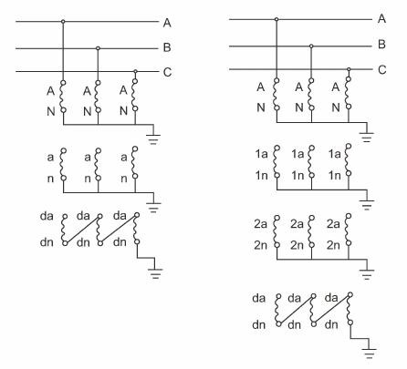 X – З обмоткою залишкової напруги (для захисту від заземлення)