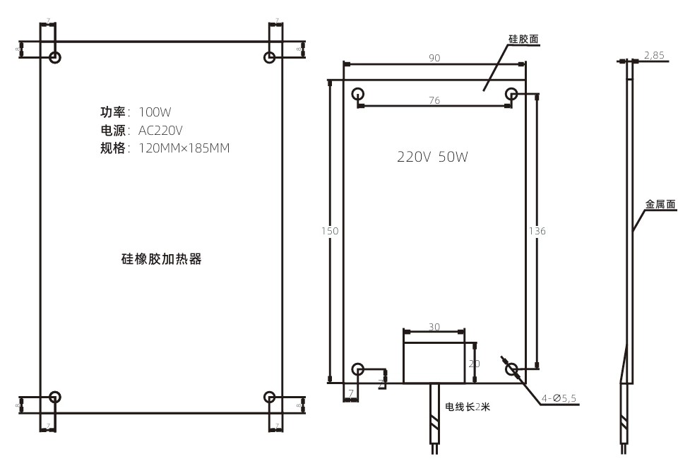 50 Вт 150 мм 90 мм 2,8 мм 136 76